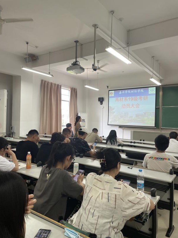 6月6日中午12:30分,高材系主任张葵花老师主持,召开高材专业学生(高材191、192、193)考研动员大会。学院领导李海东副院长和代正伟副院长出席,班主任唐柏林、董军及多位高材系专任教师也参加会议。会上,张葵花系主任就目前大三学生即将面临的考研还是就业问题进行了深入的分析与讲解,从“为什么考研”到“如何准备”等方面为同学们答疑解惑。同时邀请本专业大四的高材181潘亚杰同学,从他自身在考研的过程当中的经验进行了分享。李海东副院长最后做了考研总动员,鼓励学生报考嘉兴学院硕士研究生。