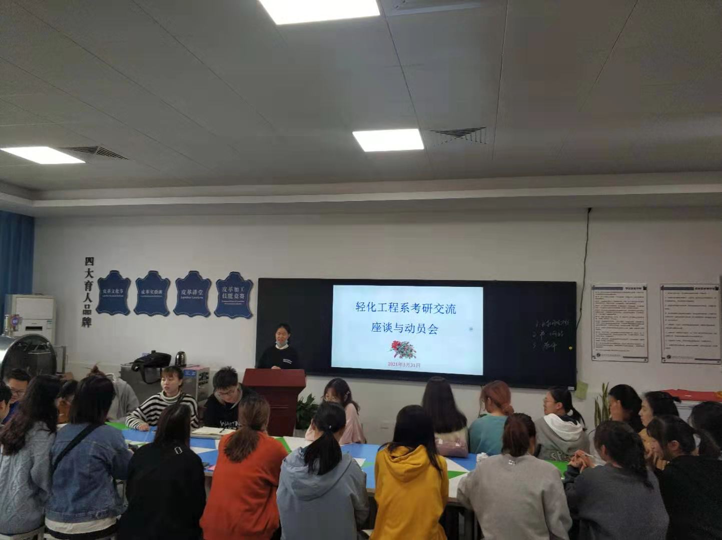 为了进一步提高我院轻化工程专业学生考研热情,明确考研目标,掌握相关考研经验和技巧并了解更多考研信息,轻化工程系于3月31日上午在5号楼轻化工程智慧实验室举行了考研经验交流与动员会。轻化工程系全体教师、轻化2017级、高材2017级、纺织2017级考研成功学生、轻化2018、2019级考研学生代表参加。交流会由李书卿老师主持。