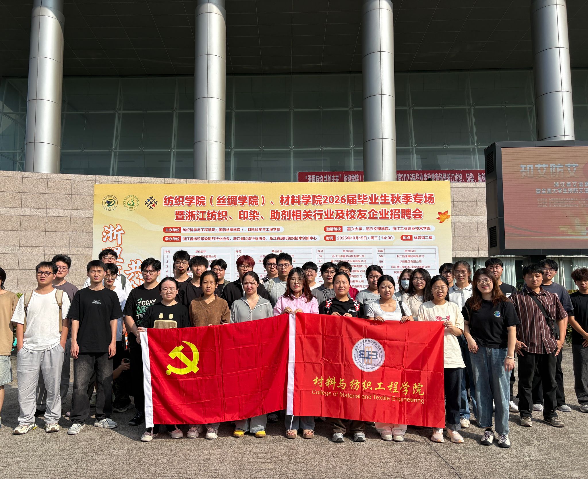 为全面落实党中央、国务院和省委、省政府关于做好高校毕业生就业创业工作的决策部署,扎实推进我院2026届毕业生就业工作,进一步拓宽学生就业渠道,2025年10月15日,太阳成集团tyc9728精心组织40余名本科生和研究生前往浙江理工大学参加浙江省印染行业协会、浙江省纺织印染助剂行业协会浙江高校2026届毕业生校园招聘会,与企业面对面交流,探寻职业发展新机遇。