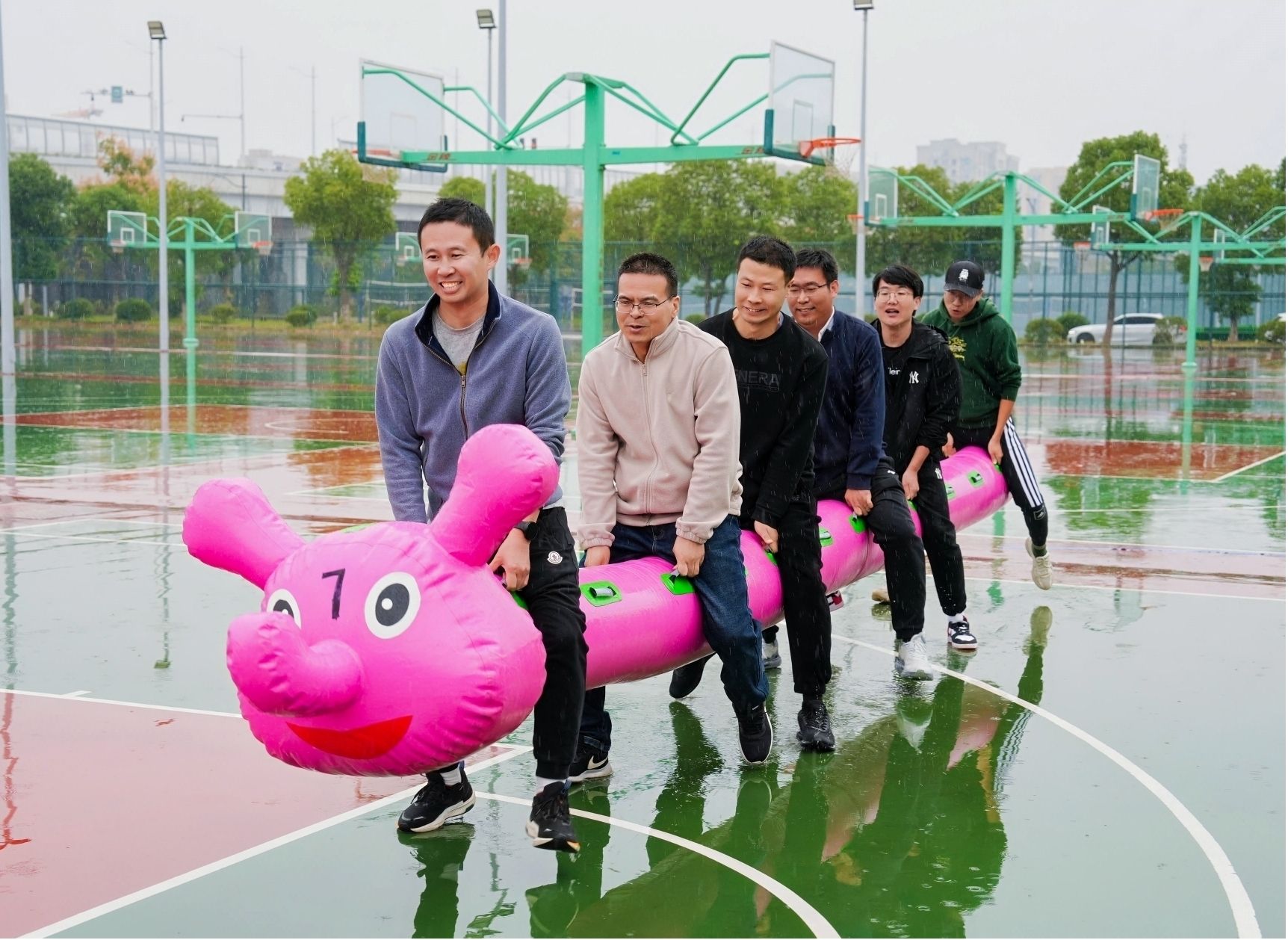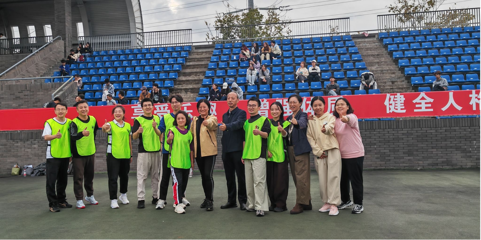 比赛期间,嘉兴地区阴雨连绵,但我院教师们克服湿滑场地挑战,展现出昂扬斗志和默契配合。雨水浸湿衣衫,却浇不灭参赛教师为集体争光的昂扬斗志;场地湿滑难行,更激发了彼此紧密配合、奋勇争先的协作精神。无论是考验默契的接力项目,还是充满趣味性的集体竞技,赛场上始终洋溢着此起彼伏的呐喊助威和相互鼓励。老师们不畏艰难、齐心协力的身影,成为寒秋赛场最动人的风景线。