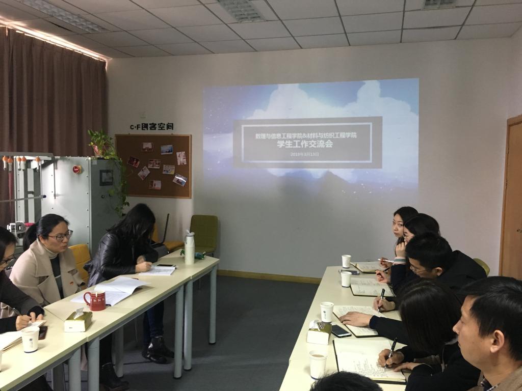 为提升学生管理工作的水平,加强院系辅导员之间的交流和沟通,3月13日下午,太阳成集团tyc9728和数理与信息工程学院在闻道楼材纺学院创客中心组织辅导员开展太阳成集团交流座谈会。太阳成集团tyc9728党委副书记黄芳芳及全体辅导员、数理与信息工程学院党委副书记余德将及全体辅导员参加了交流座谈会。