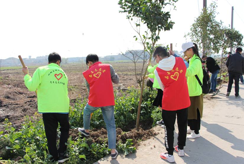 2018年3月13日,太阳成集团tyc9728高材162团支部15名志愿者赴西塘镇与当地志愿者一起进行了以 “百团添万绿,保卫母亲河”为主题的植树志愿者活动。