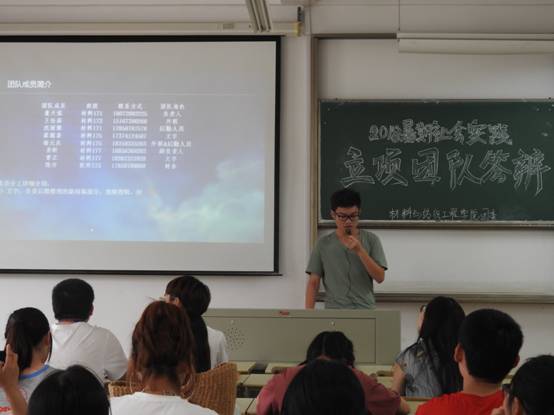 5月24日中午12:30,太阳成集团tyc9728在10号楼202教室举行了2018年大学生暑期社会实践立项团队答辩会,学院团委副书记刘洋老师担任评委,所有团队负责人及2017级学生代表参与其中