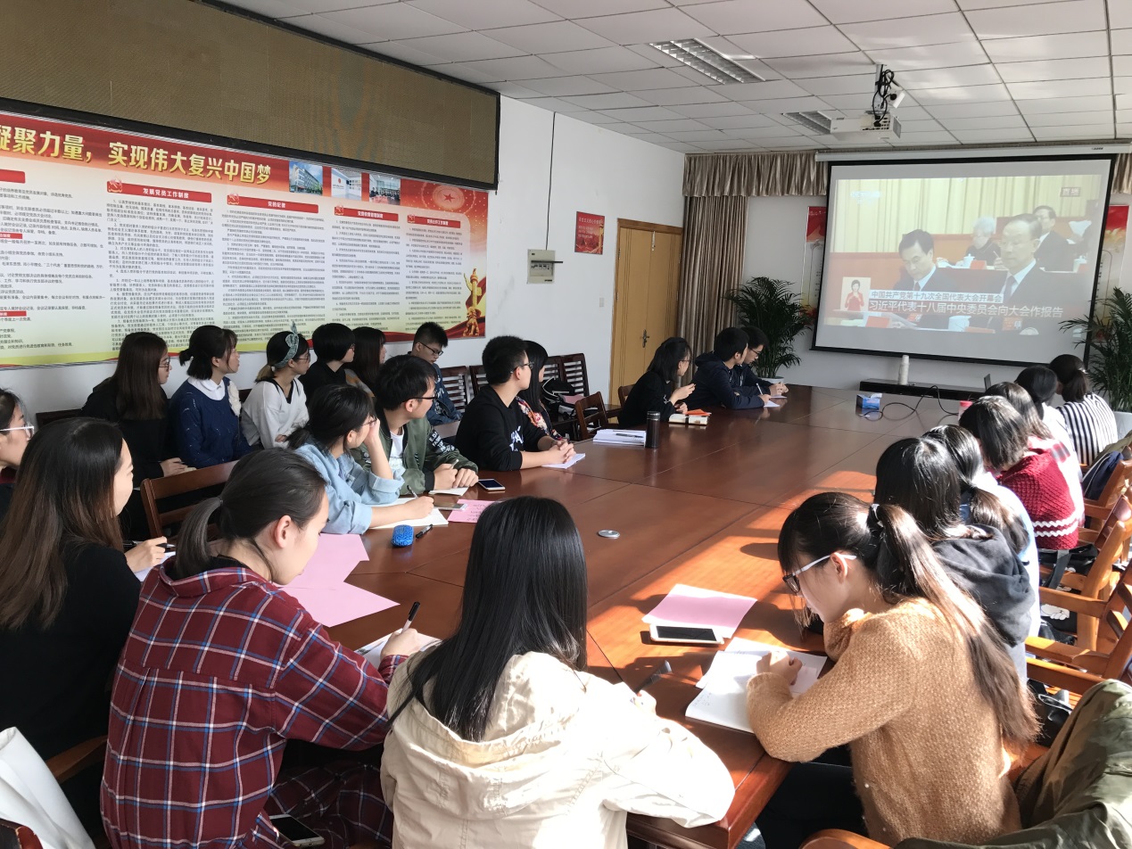 10月18日上午9:00,太阳成集团tyc9728团委组织学生干部、团员代表、学生党员代表共30人于闻道楼419会议室集中观看中国共产党第十九次全国代表大会直播。